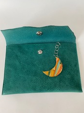 深い森に差し込む月明かりのように、落ち着いたグリーンのレザーが美しく映えるポーチ。