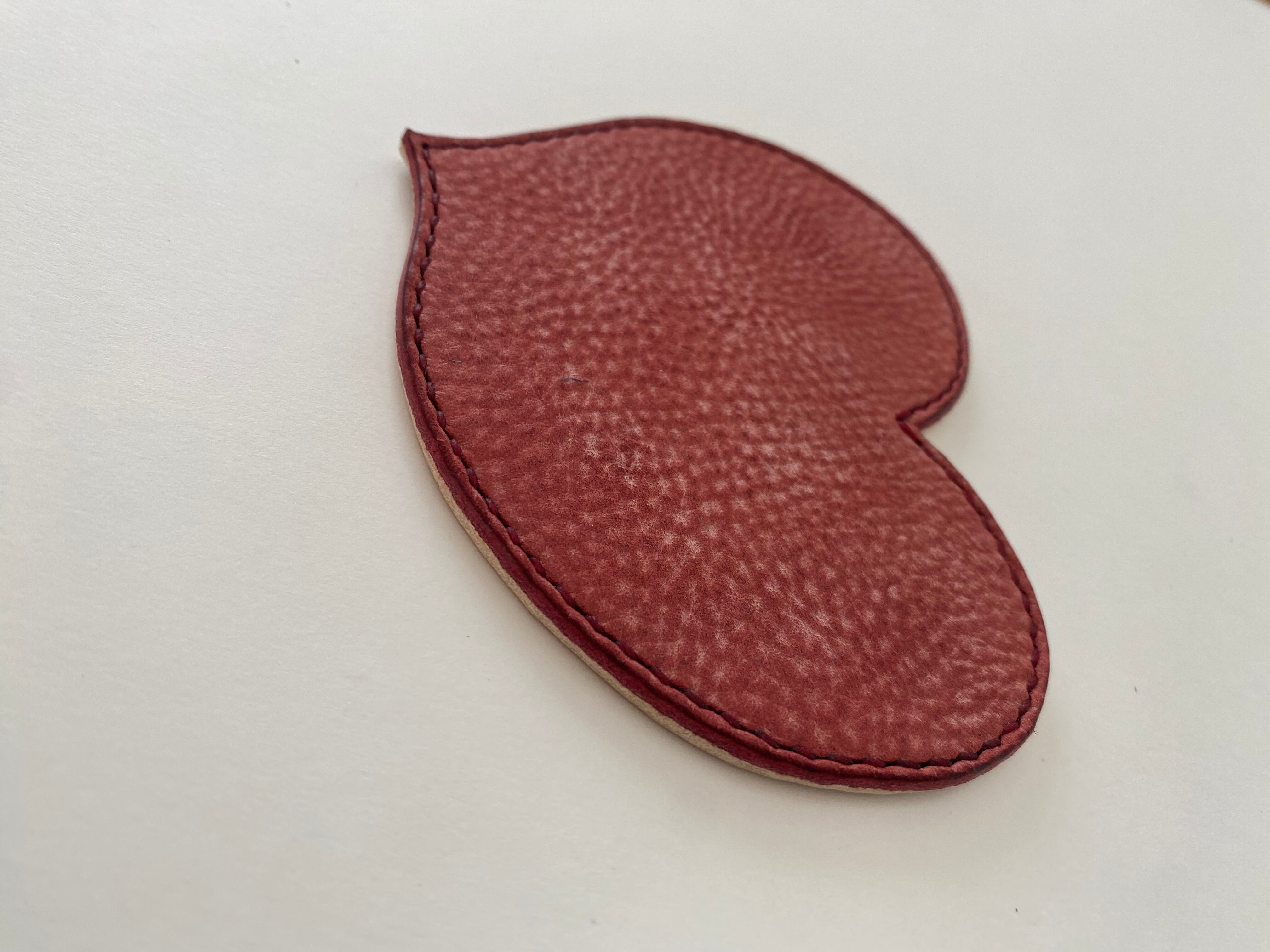 上質なイタリアンレザーであるシビラリスシオの上に、アラスカレザーのラズベリーを贅沢に重ねたコースターです。