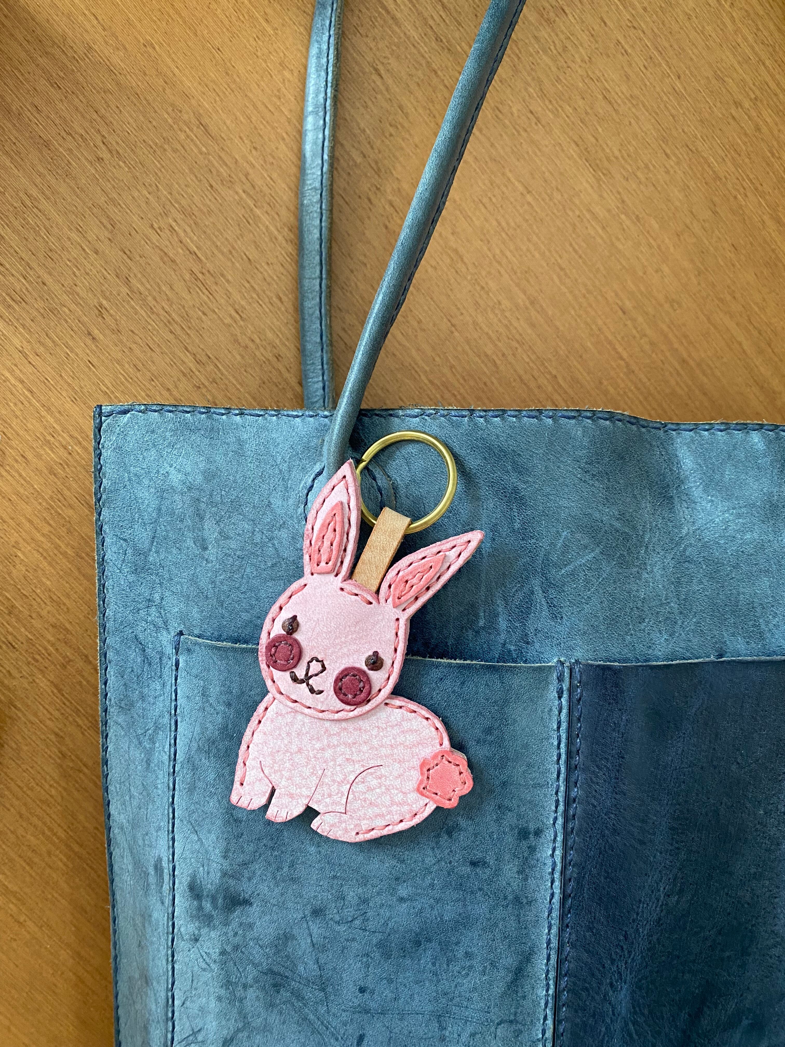 森に舞い降りたピンクうさぎのバッグチャーム